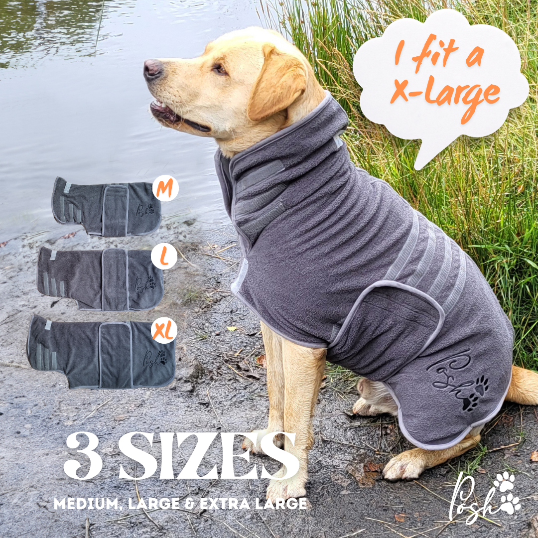 • Fast drying in minutes whilst the robe prevents the dog shaking water everywhere.